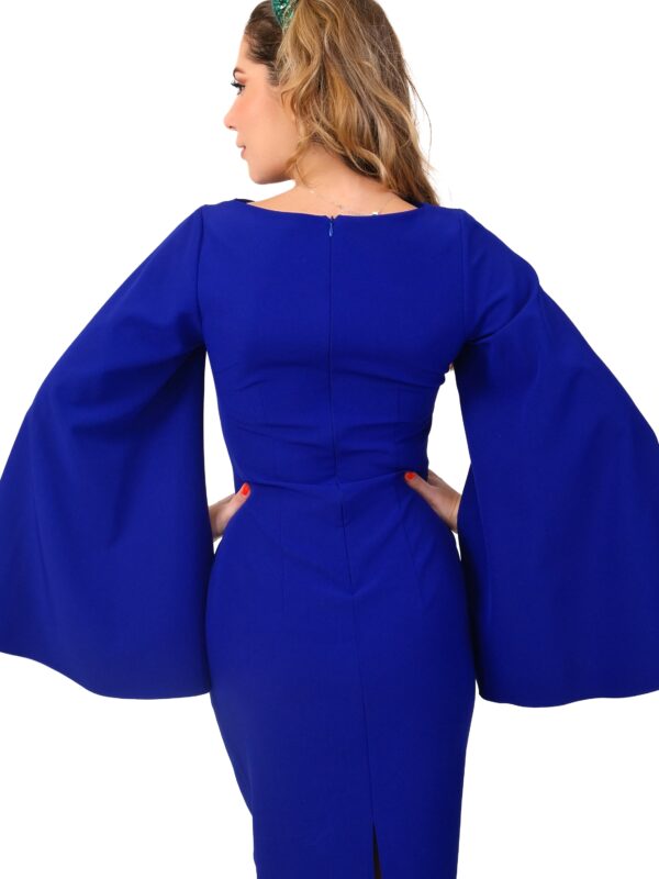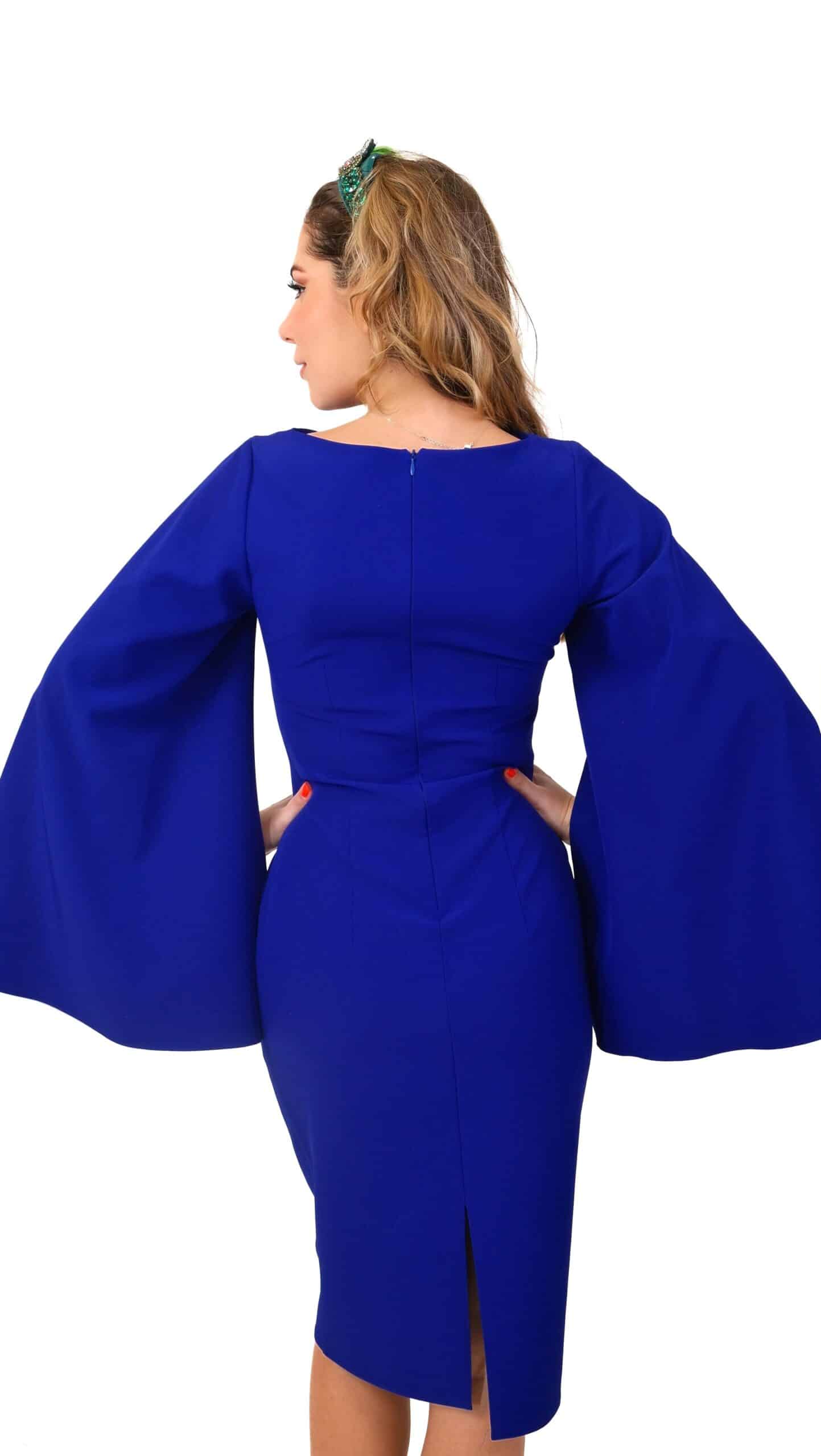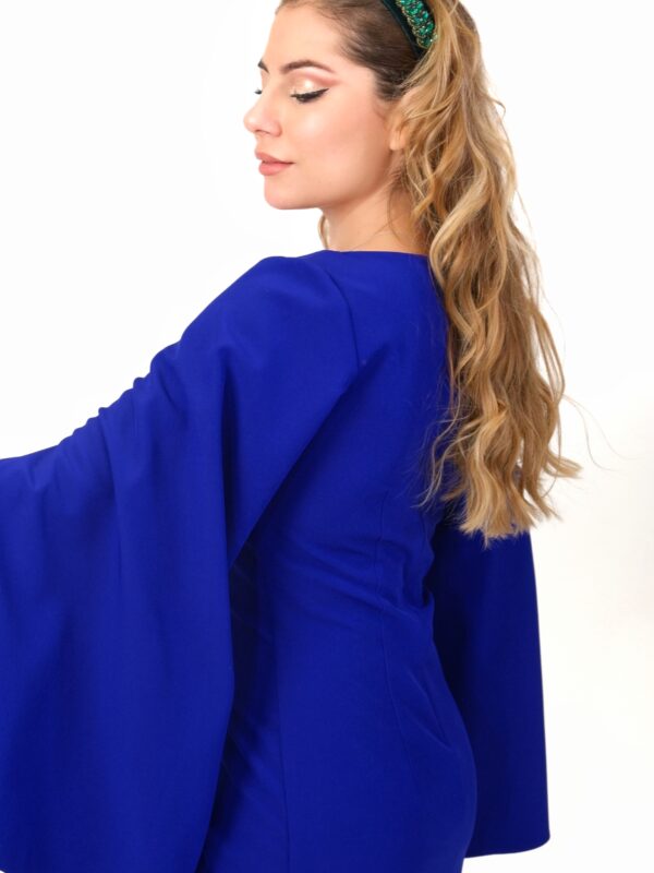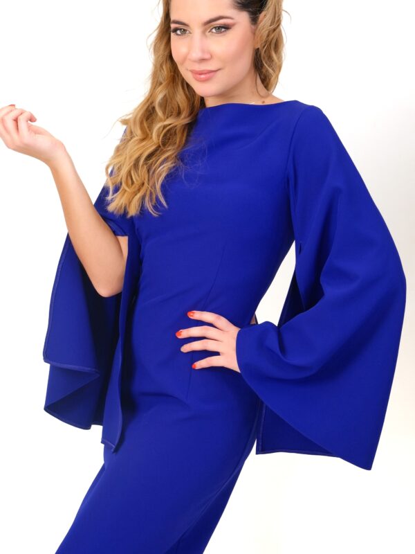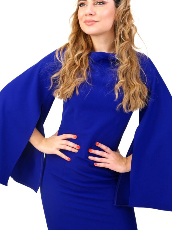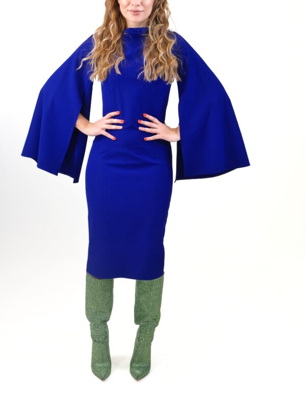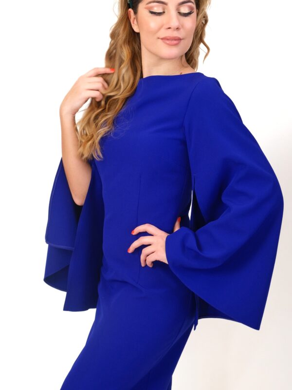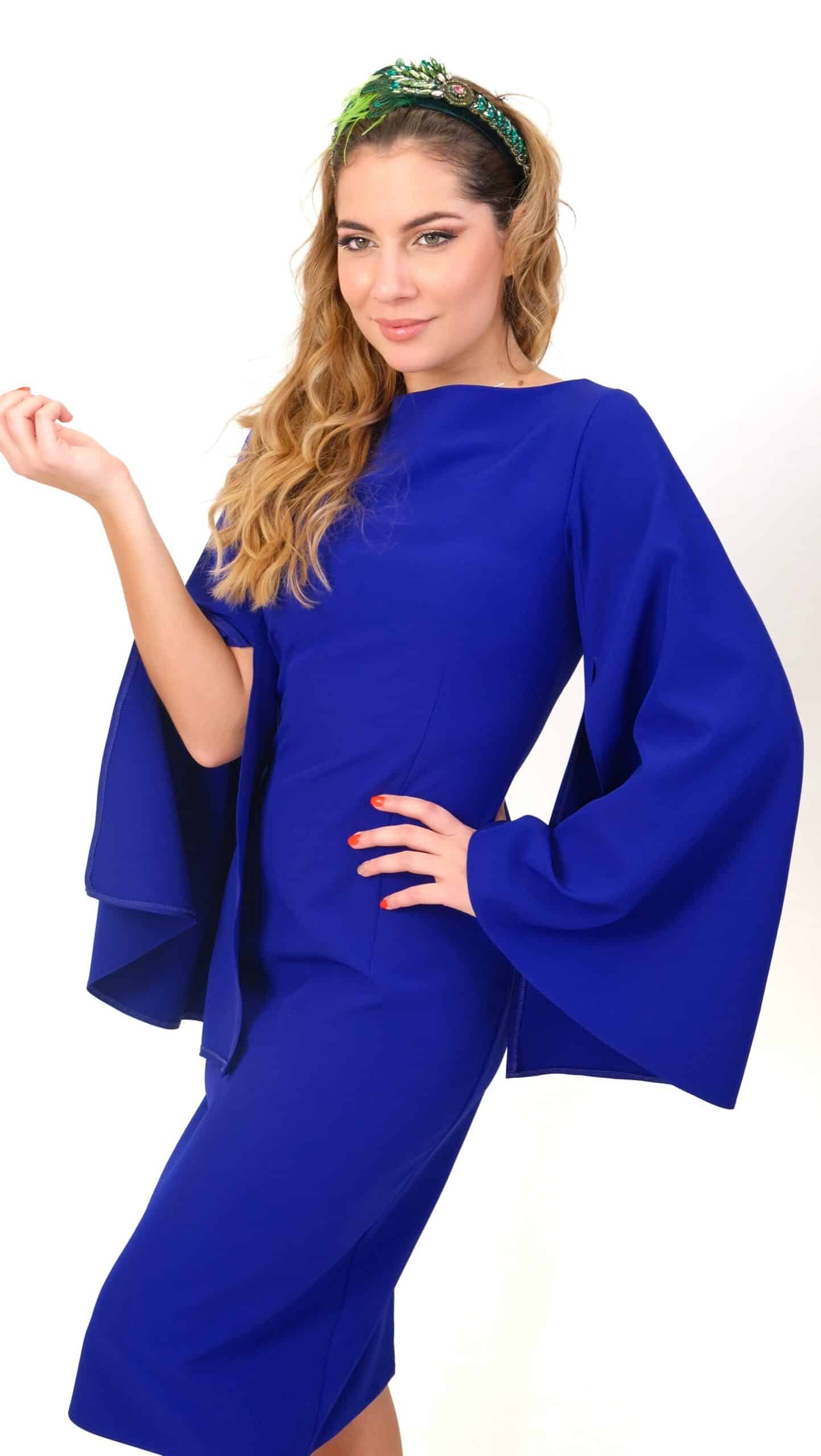 Šaty sú navrhnuté v jednoduchom áčkovom strihu, ktorý skvele sadne na každú postavu. Šaty sú ušité s dlhými rozstrihnutými rukávmi, ktoré im dodávajú na elegancii a oživujú inač jednoduchý strih. Pri jednoduchom strihu si môžete dovoliť výraznejšie doplnky. Skombinujte ako naša stylistka s nápadnou zelenou alebo kontrastnou cyklámenovou .