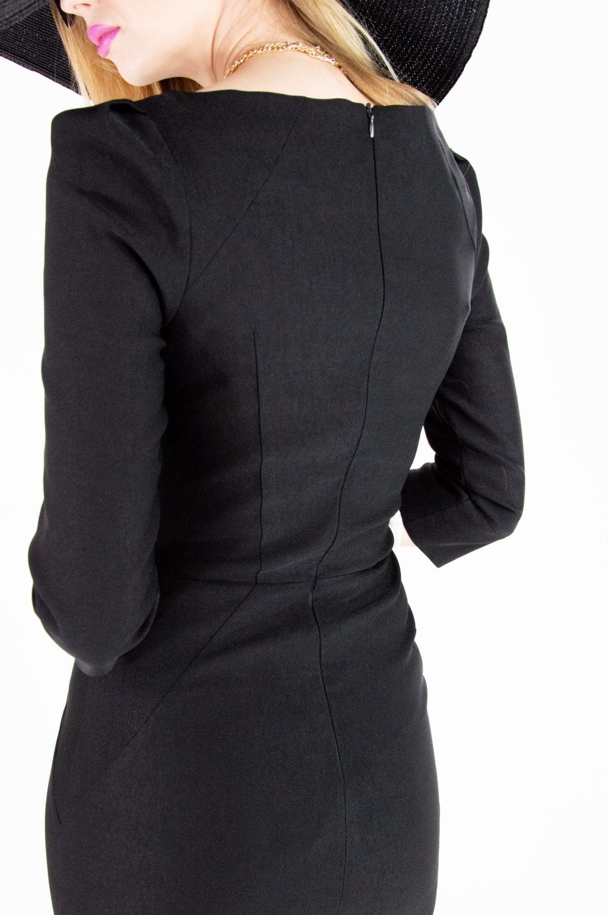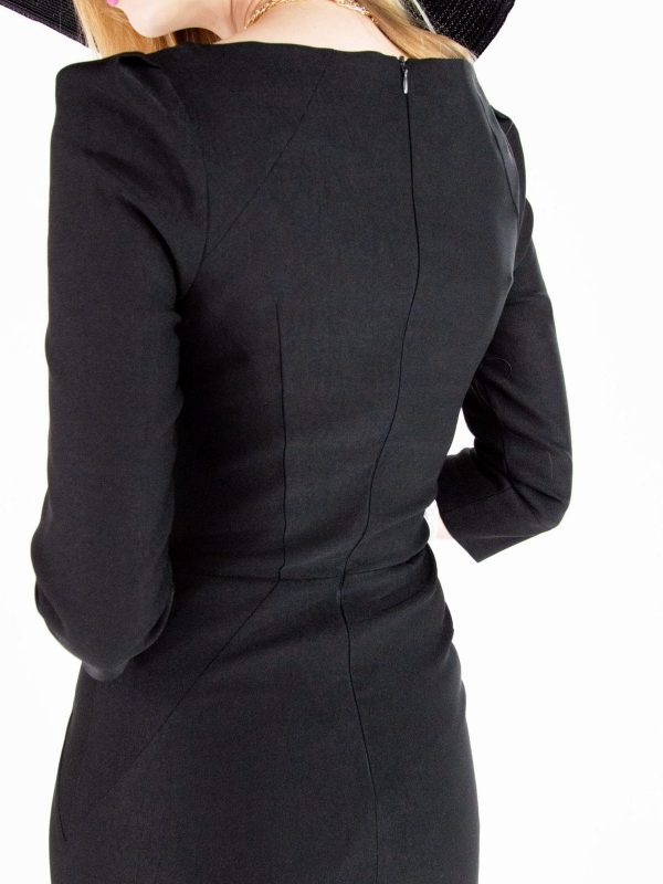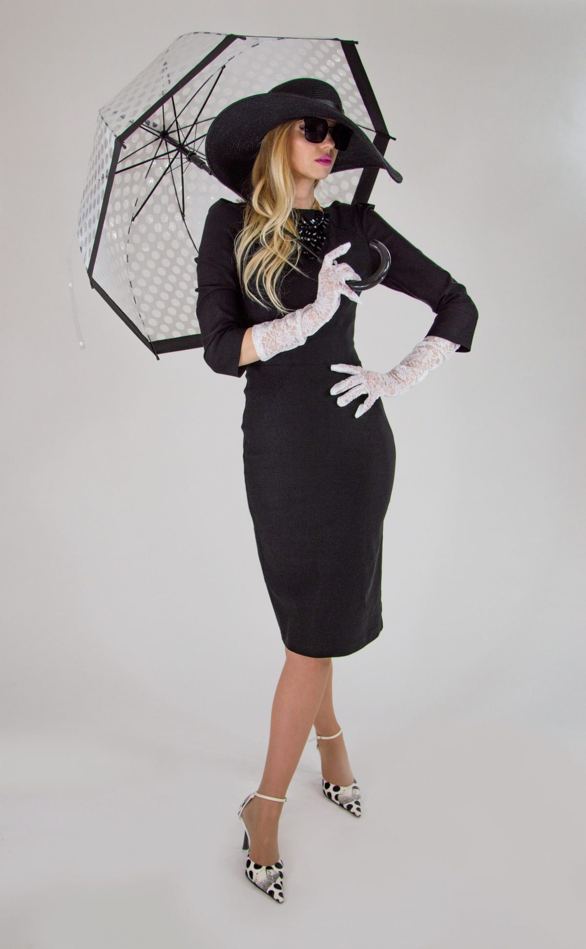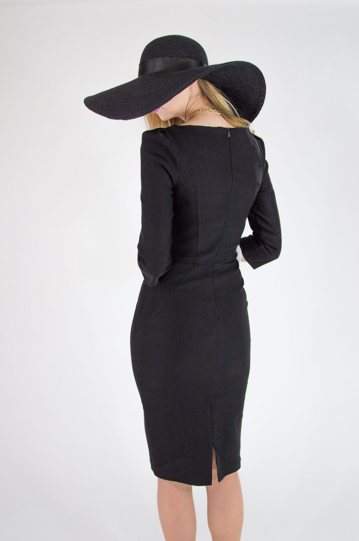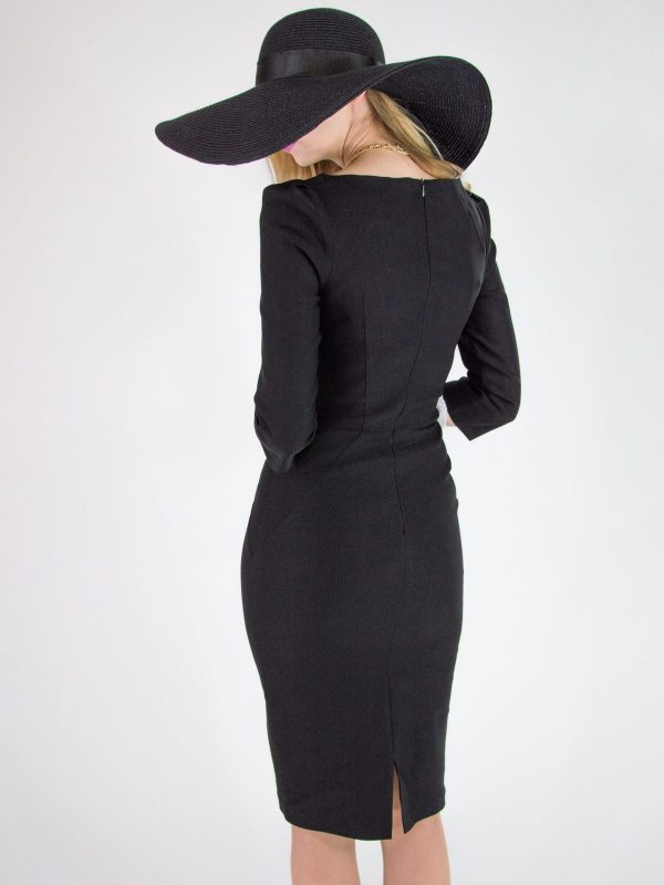 Šaty puzdrového strihu v klasickej čiernej sú nevyhnutnosťou v každom šatníku. Šaty majú kratšie rukávy, čo sa dá využiť na nosenie extravagantnejších doplnkov ako napríklad krajkové rukavičky ako použila naša stylistka. Šaty výborné sadnú na postavu a budete sa v nich cítiť komfortne počas celého dňa.