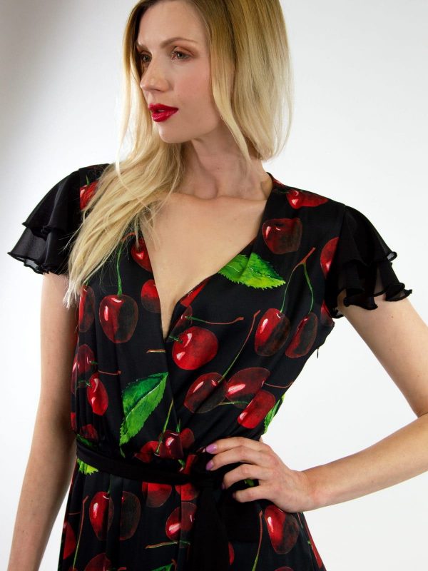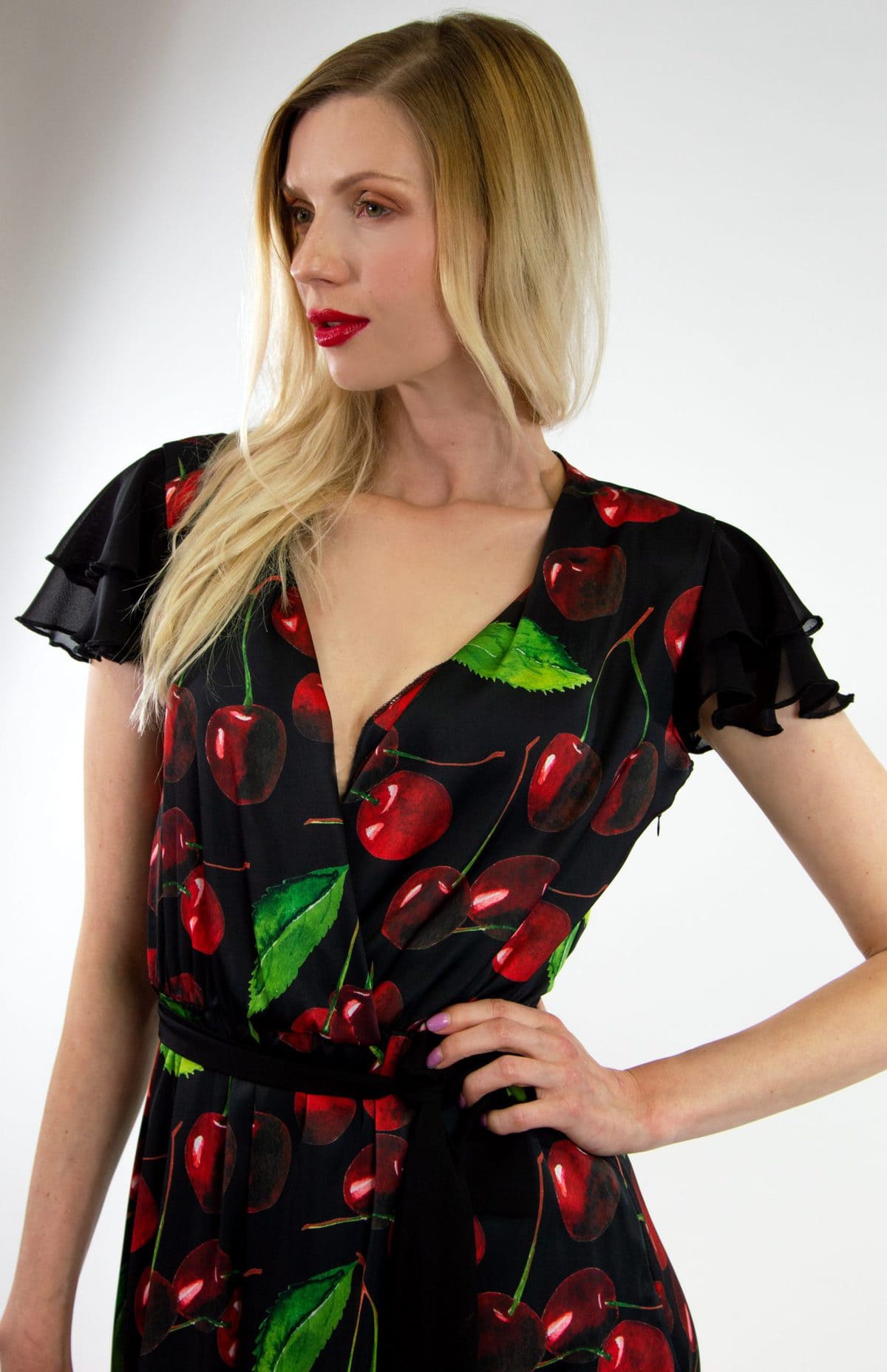 Máj sa už chýli ku koncu, ale čerešne sú jednoznačné letným motívom. Šaty sú ušité z jemného materiálu, ktorý dýcha za Vás a na sebe ho ani necítite. Šaty sú v obľúbenom zavinovaciom strihu, ktorý pristane skvele každej postave. Jemne volánové prvky dodávajú šatám na nežnosti a jemnosti. Skvelé šaty na horúci letný deň.
