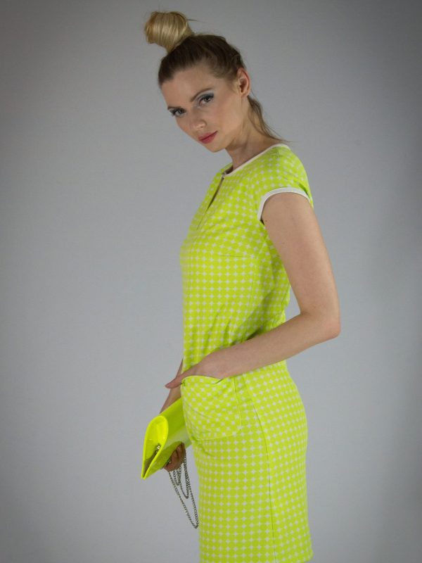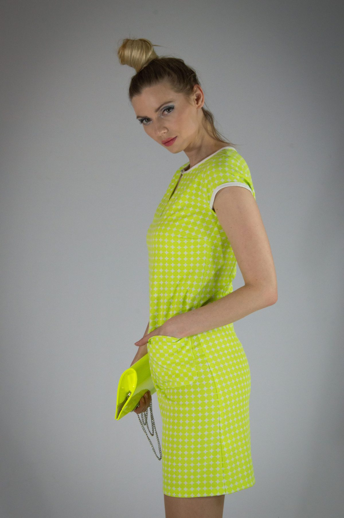 Šaty v jednoduchom puzdrovom strihu, ktorý sadne na každú postavu. Šaty sú lemované v oblasti výstrihu a na rukávoch. Vďaka pohodlnému strihu vhodné aj na každodenné nosenie do práce.