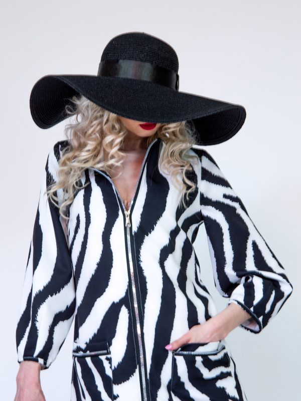 Nesmrteľná čierno-biela kombinácii v jednom z najpopulárnejších zvieracích motívov. Jednoduchý áčkový strih s komfortným strihom na zips a funkčnými vreckami dáva naplno vyniknúť vzoru. Veľmi pohodlné šaty, o ktorých ani po celom dni v nich strávenom neviete.