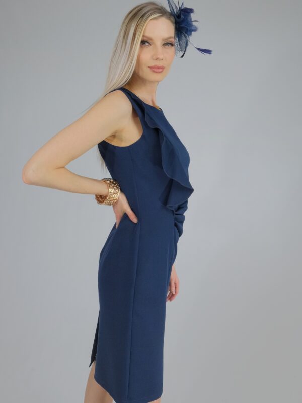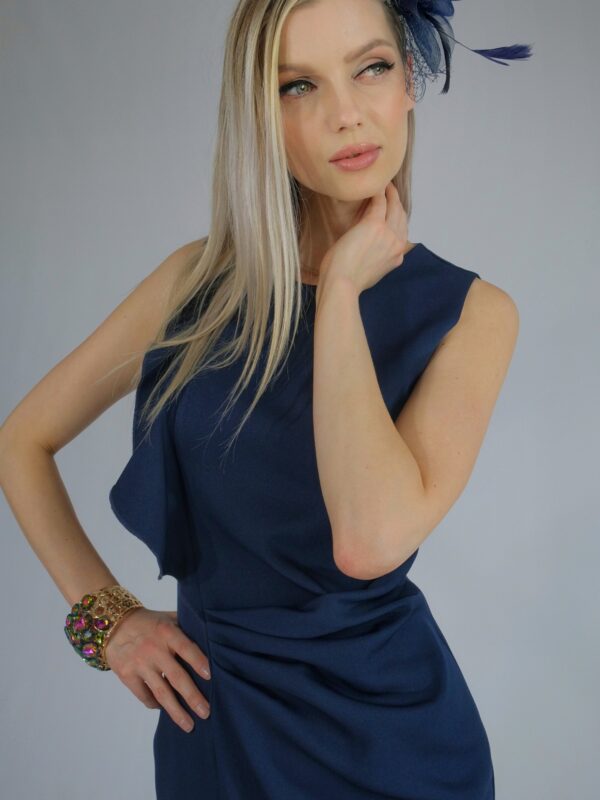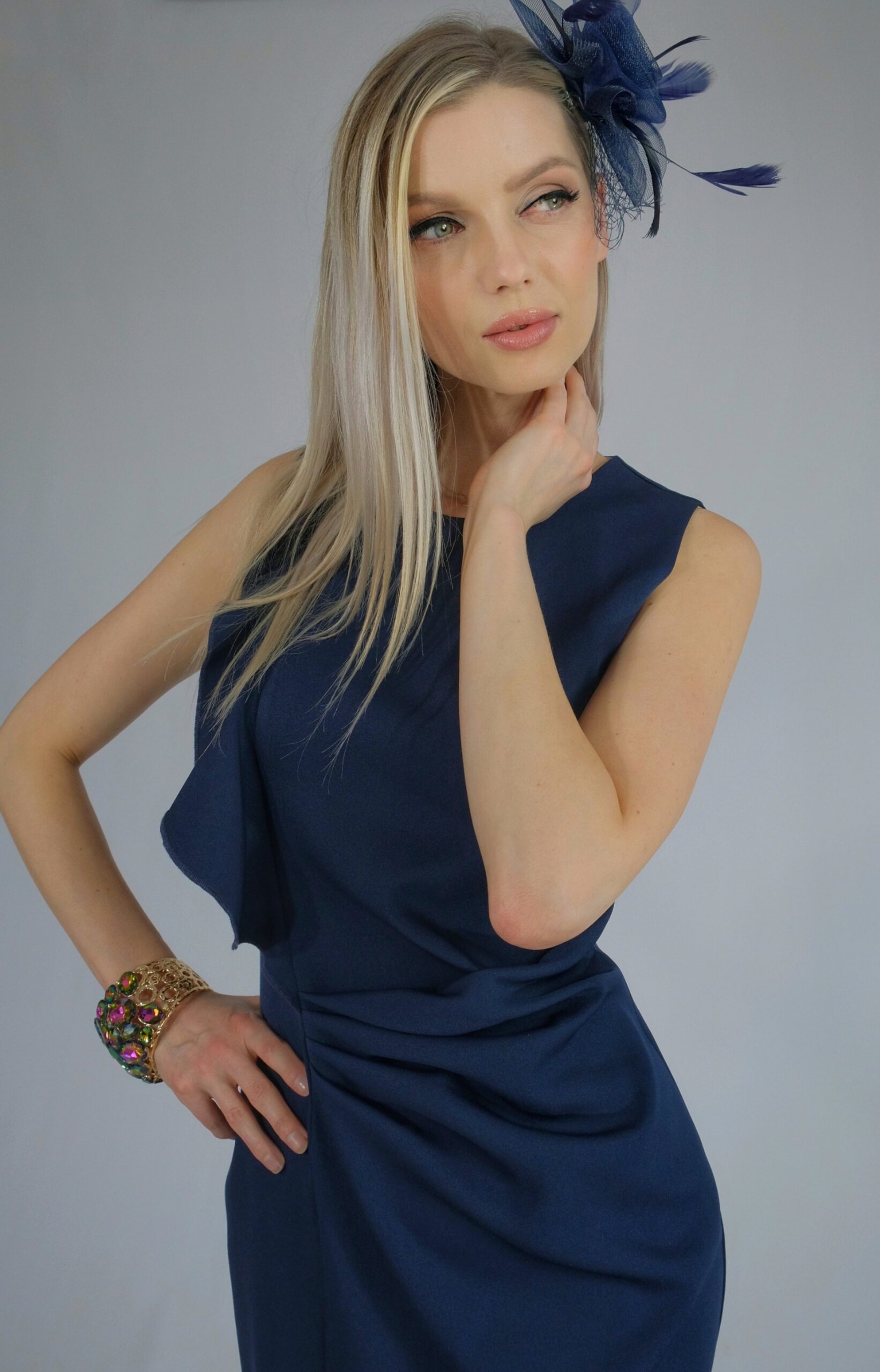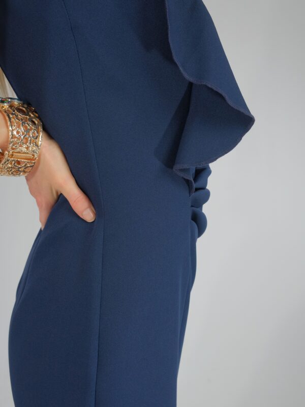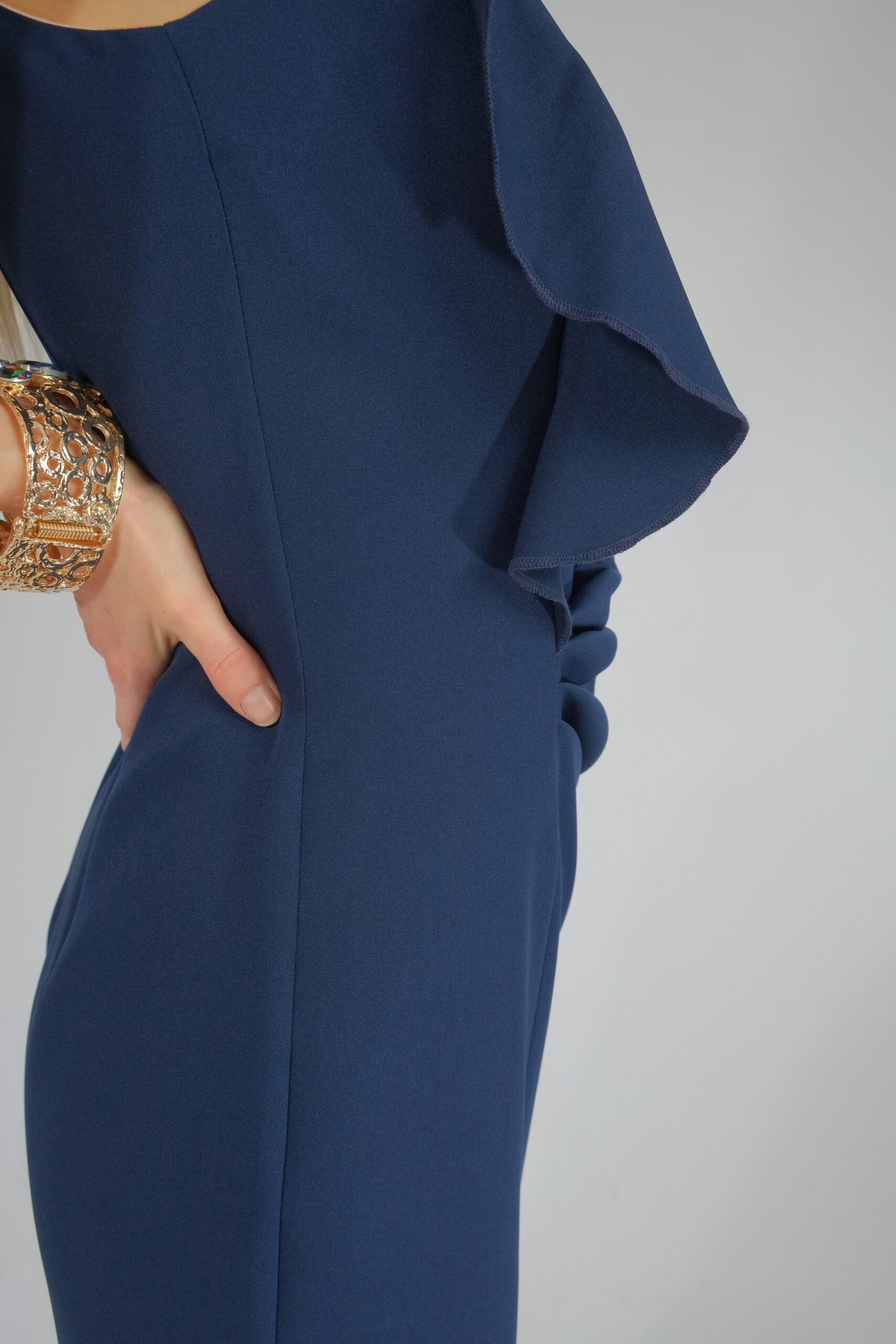 Šaty sú ušité v jednoduchom puzdrovom strihu, ktorý výborne sadne na postavu. Šatám dodávajú pocit komfortu rozširujúce sa rukávy. Šaty sú navrhnuté vo výraznej kvetinovej potlači na tmavomodrom pozadí a sú ideálnym kandidátom na nadchádzajúce oslavy. Ak chcete šaty zjemniť skombinujte ich s pastelovými alebo smotanovými doplnkami.