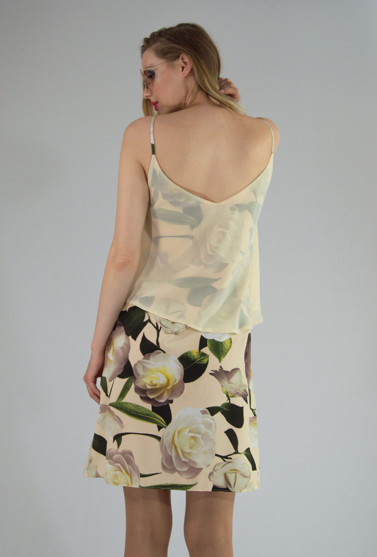 Šaty ušité v príjemnom letnom strihu. Šaty majú kvetinový vzor na béžovom podklade, vďaka tomu sa dajú ľahko skombinovať skoro so všetkými farbami. Na oslavu skombinujte so zlatými doplnkami.