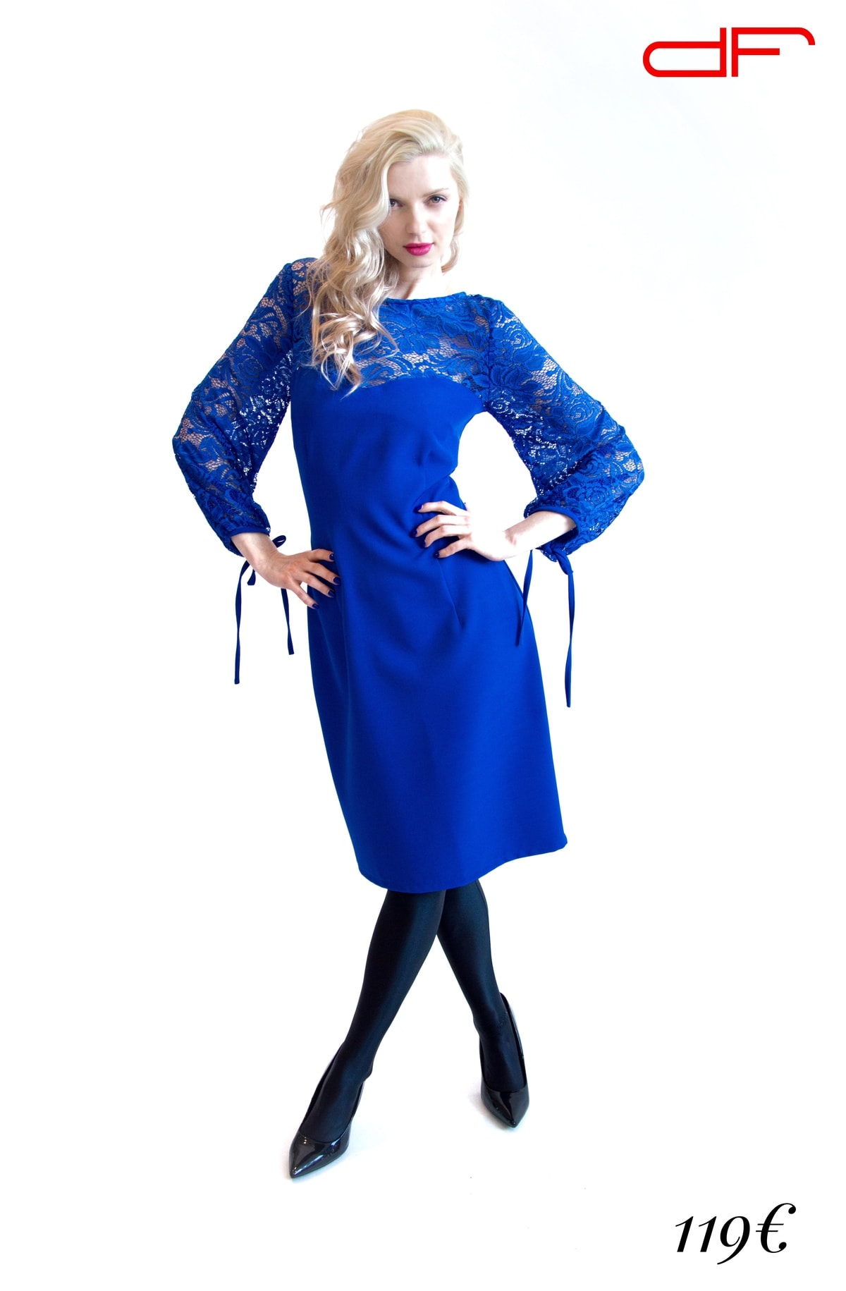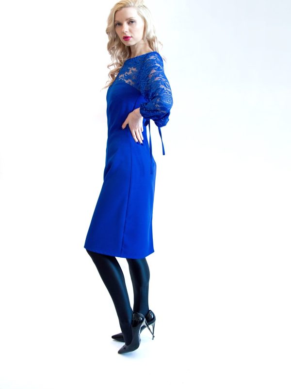 Šaty puzdrového strihu, ktoré výborne sedia na postave. Krajka je do strihu vkusne zakombinovaná a tvorí viktoriánske voľné rukávy na zaviazanie mašličkou. V krásnej kráľovsky modrej zažiarite na každej spoločenskej udalosti . V čiernej farebnosti ich ľahko doladíte ku každému outfitu a môžete si ich vziať aj kdekoľvek.