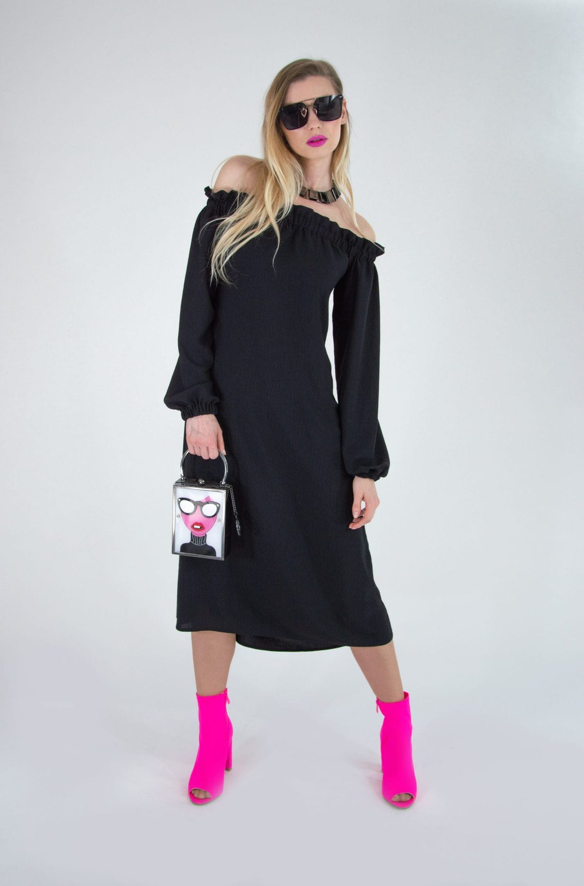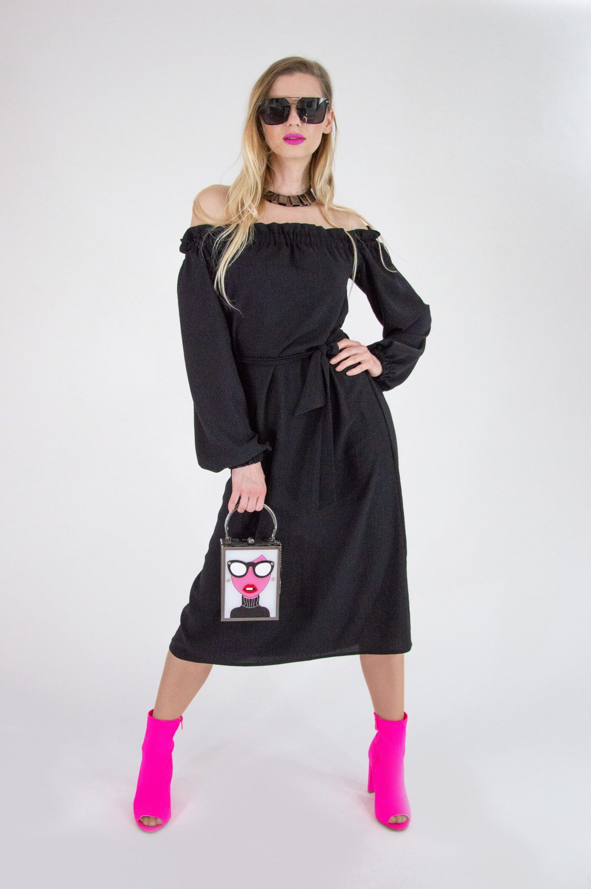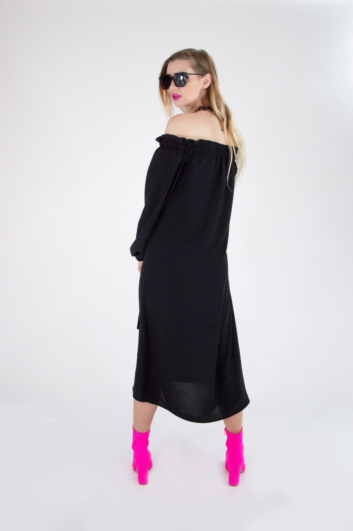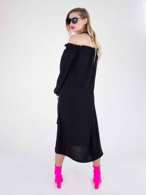 Šaty ušité v pohodlnom letnom strihu. Pre tie z Vás, ktoré milujú čiernu nadovšetko sme ušili jemné ,poddajné a komfortné šaty, v ktorých sa budete po celý deň cítiť výborne. Šaty sú ušité v miernom áčkovom strihu a dajú sa ozvláštniť výraznými doplnkami. K šatám je aj opasok z vlastného materiálu, ale pokojne ich skombinujte aj s masivnými zlatými alebo striebornými opaskami. Šaty majú zriasený výstrih ako aj rukáv.