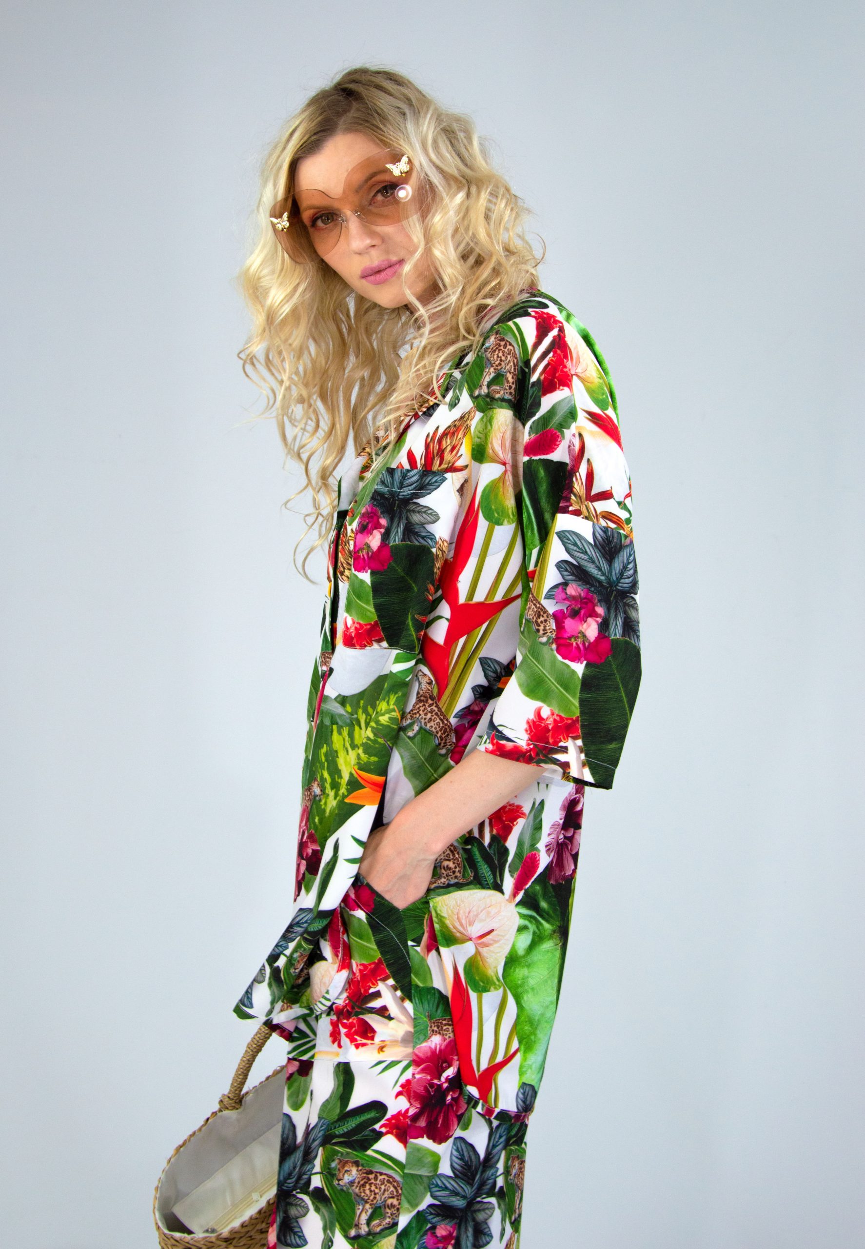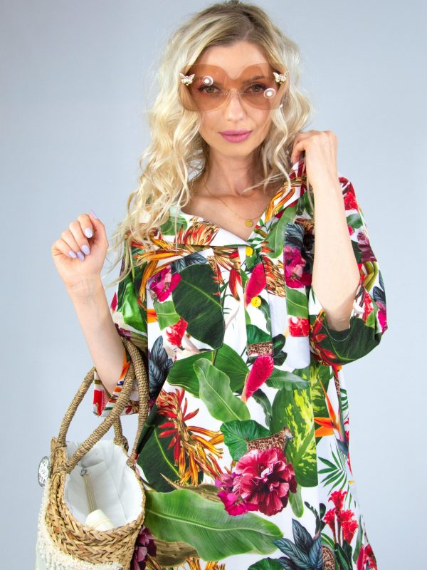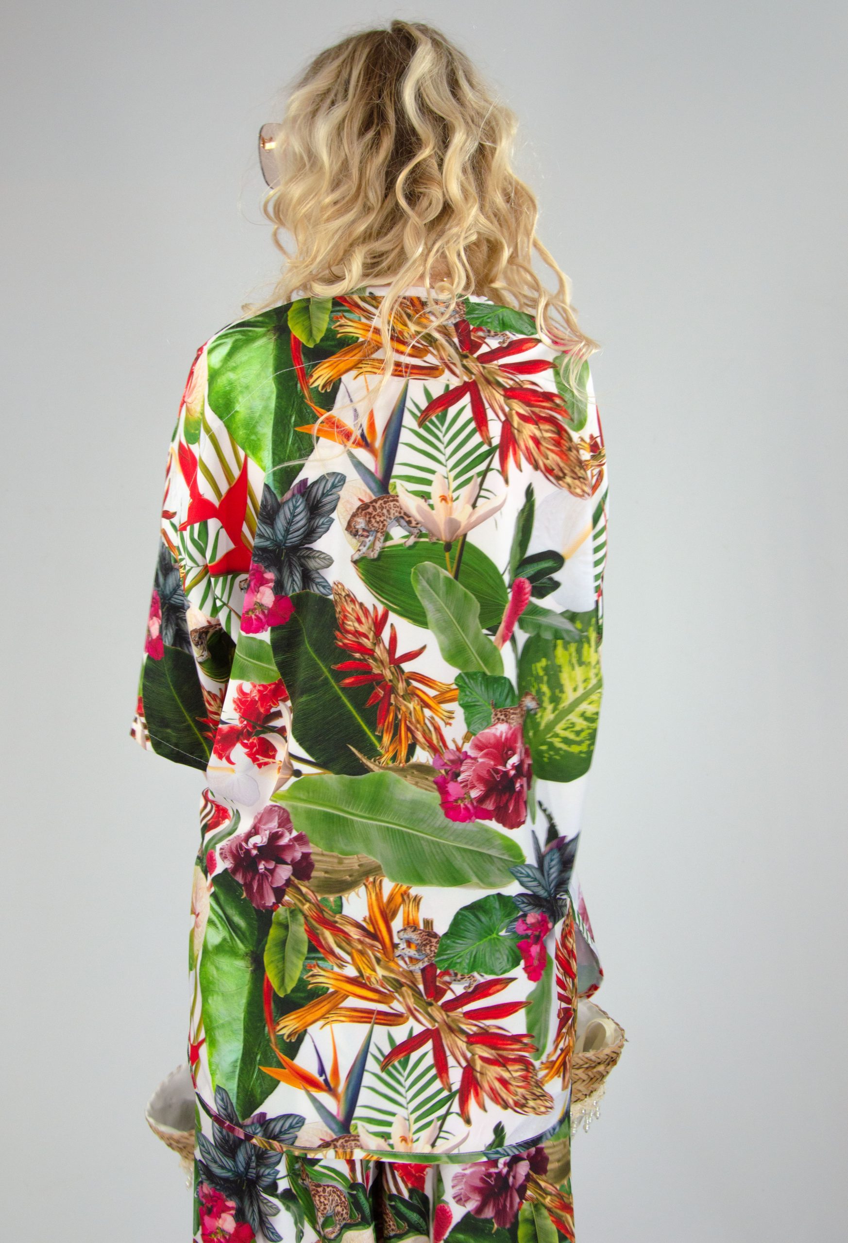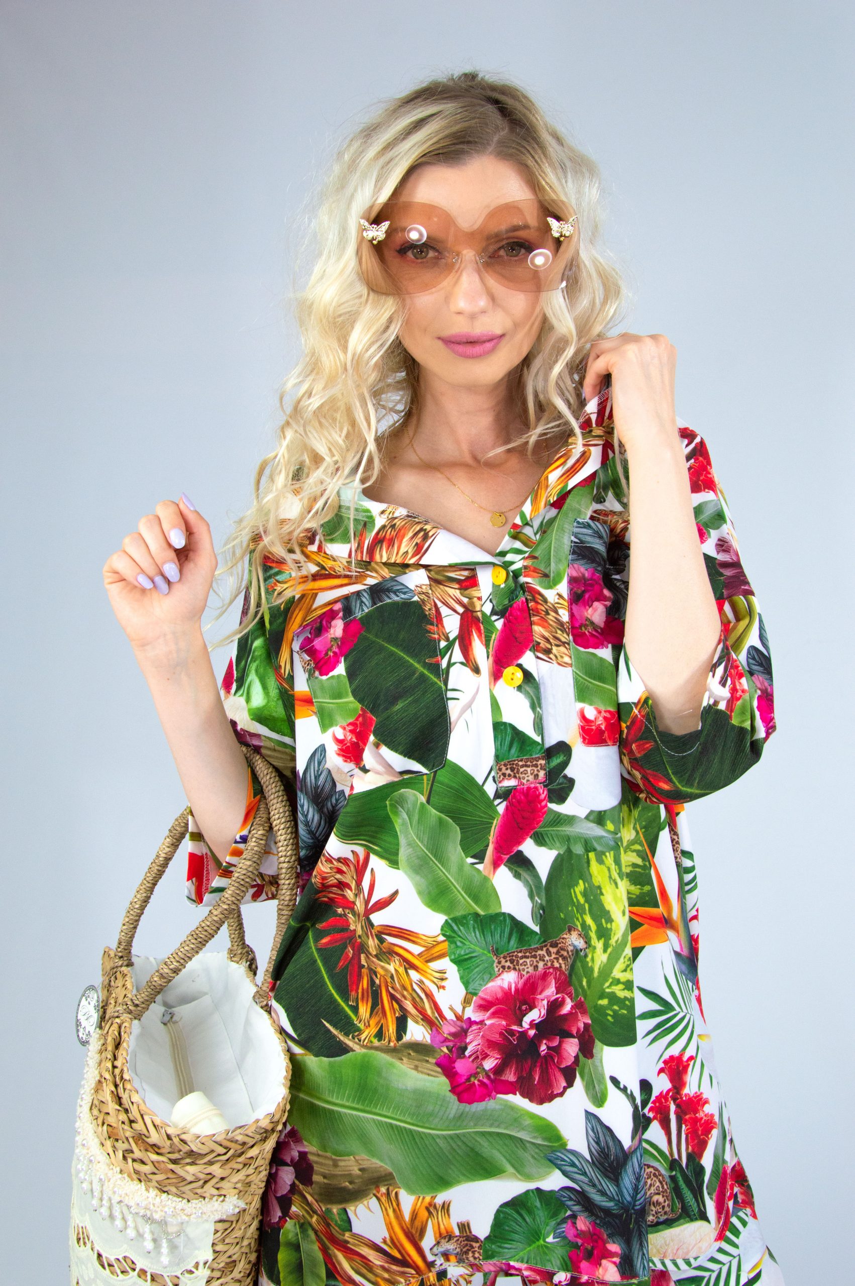 Ak hľadáte blúzku, s ktorou sa v lete budete cítiť skutočne pohodlne, tak ste ju práve našli. Blúzka je strihaná vo voľnom áčkovom strihu zo skvelého materiálu pre maximálny letný komfort. Vďaka výraznému vzoru pomôže zamaskovať drobné nedostatky. Skombinujte ju s našimi nohavicami Afrika pre kompletný look