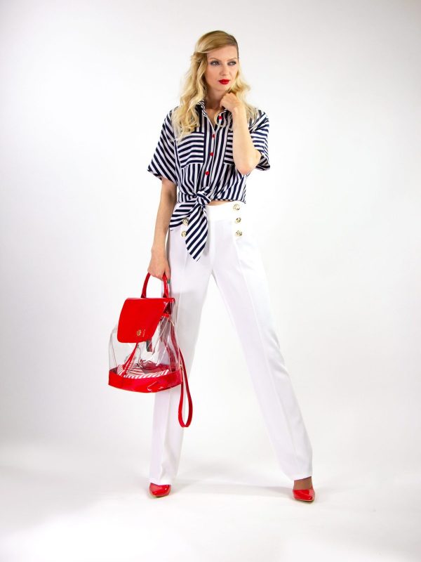 Košeľa je navrhnutá v pohodlnom áčkovom strihu, ktorý výborne sadne na každý typ postavy. Košeľa má po bokoch rozstrihy, ktoré jej dodávajú na vzdušnosti. Košeľa má silný námornícky motív v typicky letnej kombinácii modrého prúžku a zlatých lán. Tunika je ušitá z ľahkého materiálu, v ktorom sa budete cítiť skvele aj počas horúcich dní.