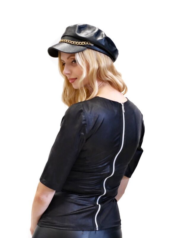 Top je navrhnutý v úzkom strihu, ktorý sa výborne prispôsobí Vašej postave. Top je ušitý z prijemného materiálu s jemným leskom, ktorý dodá každému Vášmu outfitu glamour. Top je ušitý v univerzálnej čiernej farbe, ktorá skvele sedí na každý druh postavy. Zaujímavým detailom je ozdobný zips, ktorý sa tiahne po celej dĺžke topu.