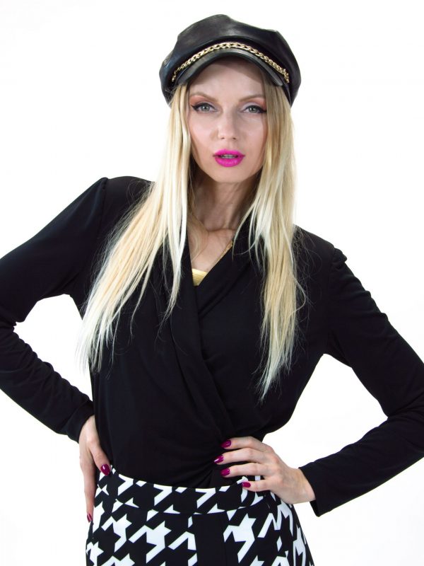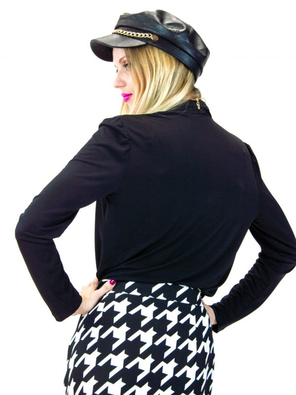 Jednoduchý top v čiernej farbe s véčkovým výstrihom. Vďaka spracovaniu z výborného materiálu sa skvele prispôsobí postave a ľahko ho skombinujete s formálnymi aj menej formálnymi outfitmi. Čierny elegantný top sa nestratí v žiadnom šatníku a využijete ho v každom ročnom období.
