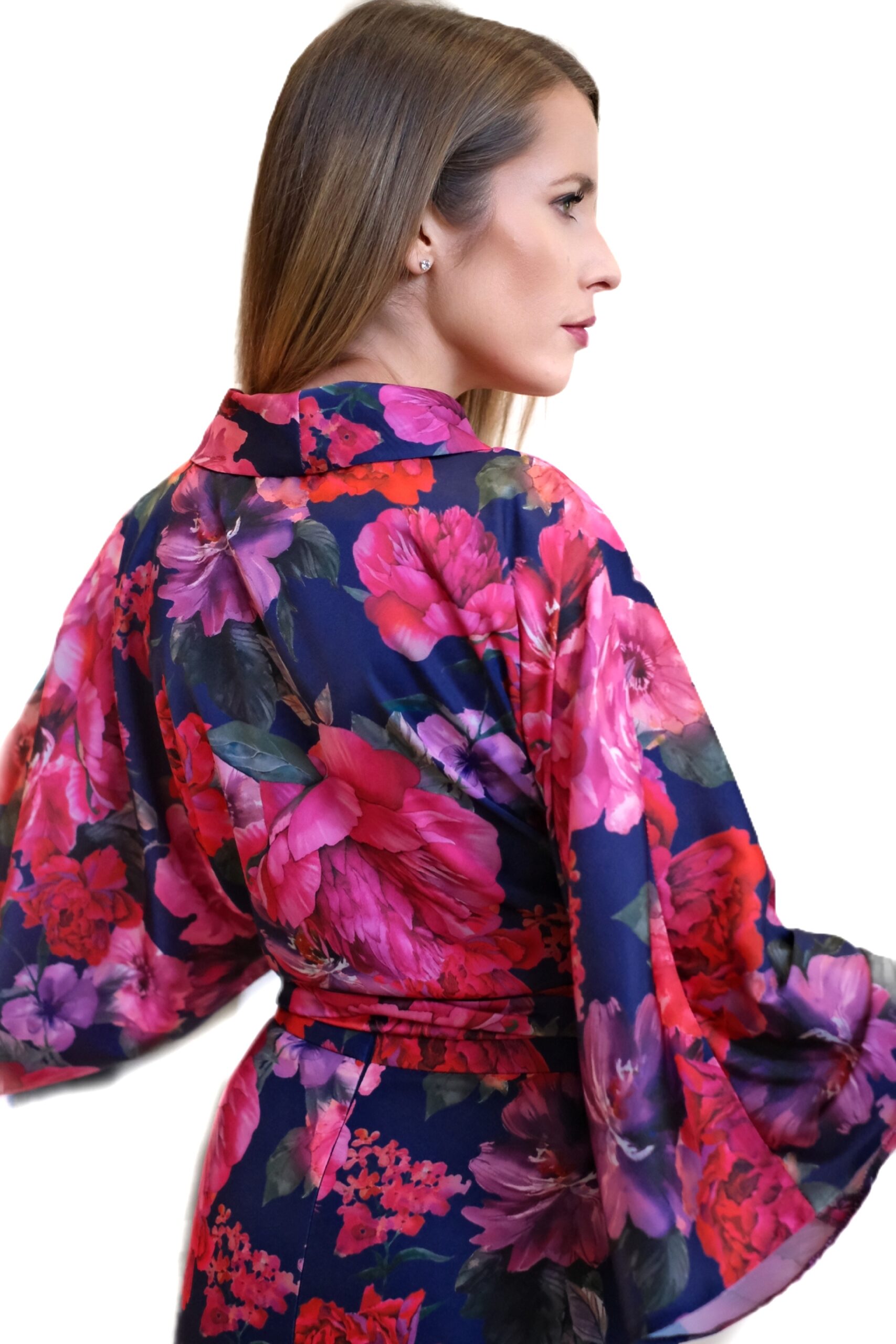 Top je navrhnutý z ľahučkého materiálu, v ktorom sa budete cítiť, ako keby na sebe nič nemáte. Top je ušitý v nadýchanom strihu, ktorý poskytuje dostatok voľnosti a komfortu. Preloženie hornej časti blúzky dodáva topu variáciu previazania v oblasti pasu a tým pádom si krásne viete ukorigovať dekolt. Vzor materiálu dodáva romantický nádych. Najzaujímavejším prvkom na tope je jednoznačne nádherná látka, v ktorej sú dominantné kvety, ktoré hrajú odtieňmi cyklámenovej a tmavomodrej farby. Spolu vytvárajú nádhernú kompozíciu, ktorá pripomína namaľovaný obraz. Kombinujte s neutrálnymi doplnkami alebo cyklámenove lodičky pre wow efekt. Pre kompletný look kombinujte so sukňou Flowcoll.