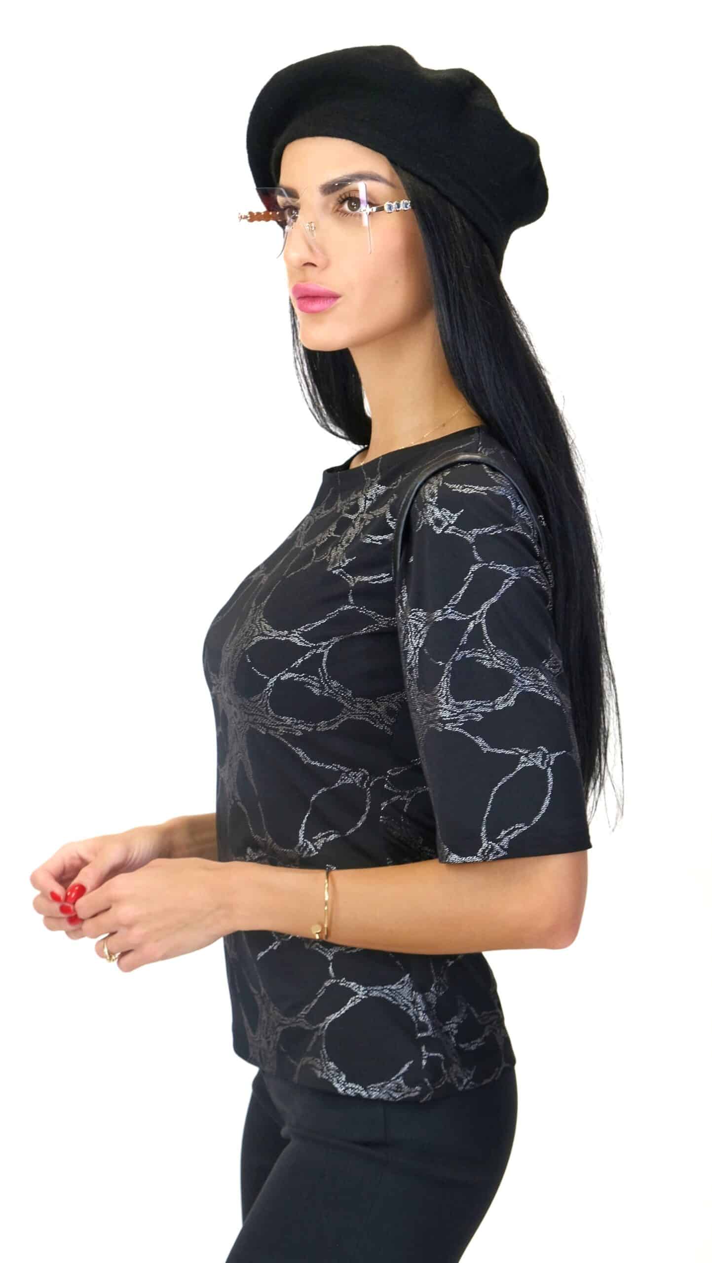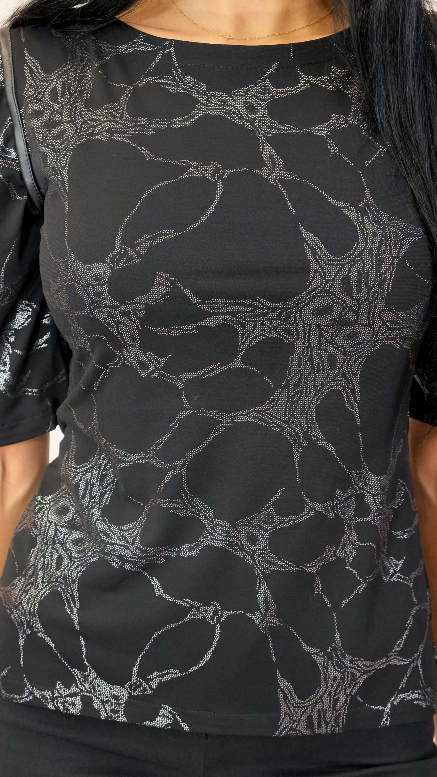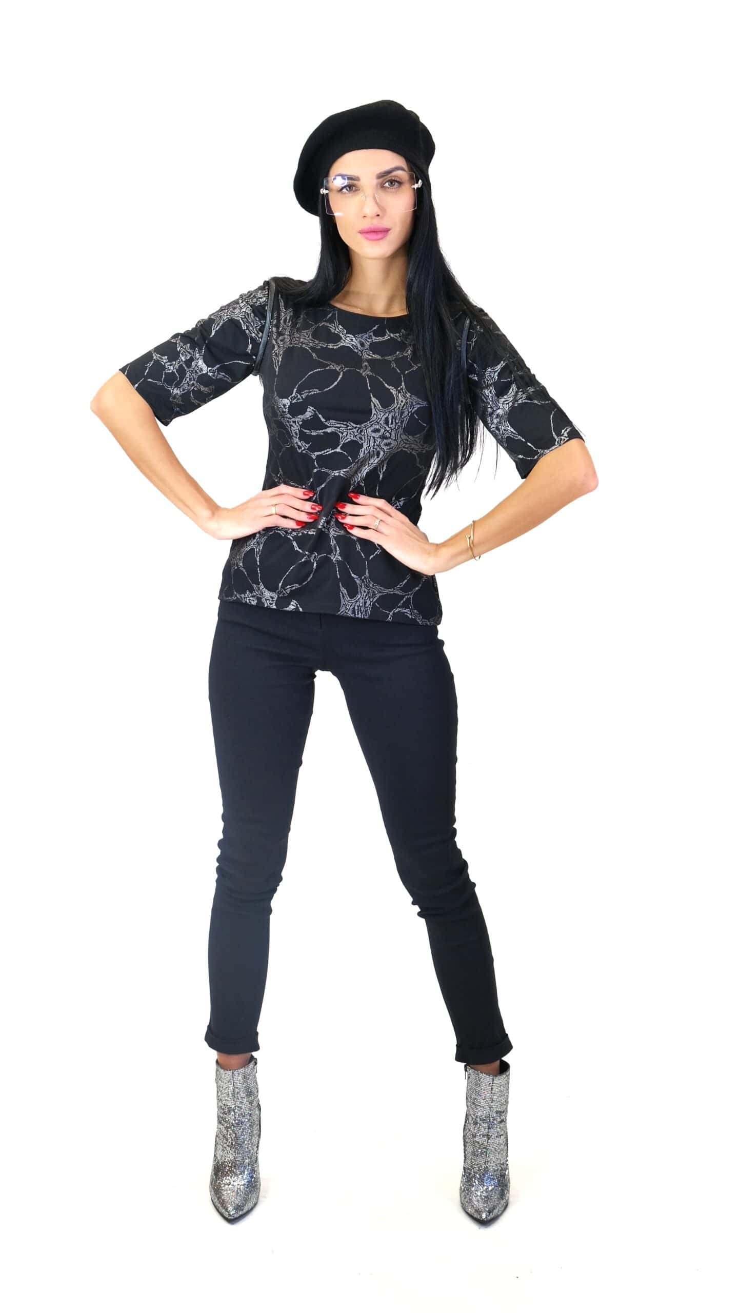 Top je navrhnutý v jednoduchom strihu, ktorý padne na každú postavu. Top je ušitý z ľahkého prispôsobivého úpletu. Top výborne sadne na postavu a dá sa veľmi ľahko skombinovať s čiernymi úzkymi nohavicami. Top má zaujímavú potlač, ktorá mu dodáva šmrnc.