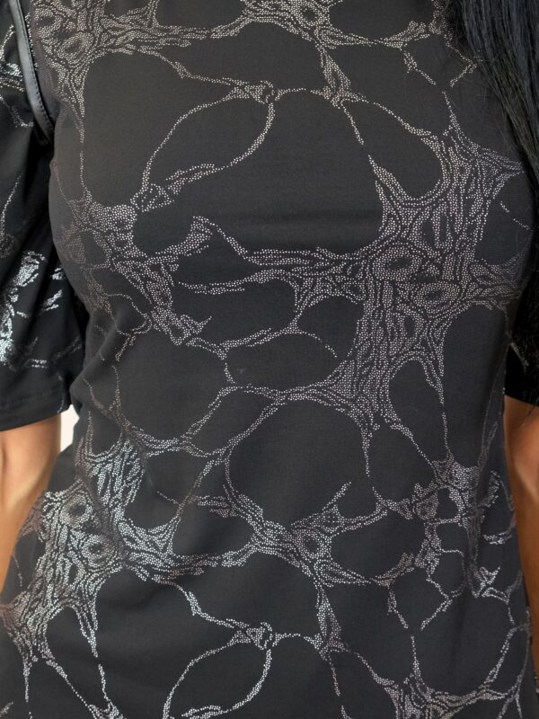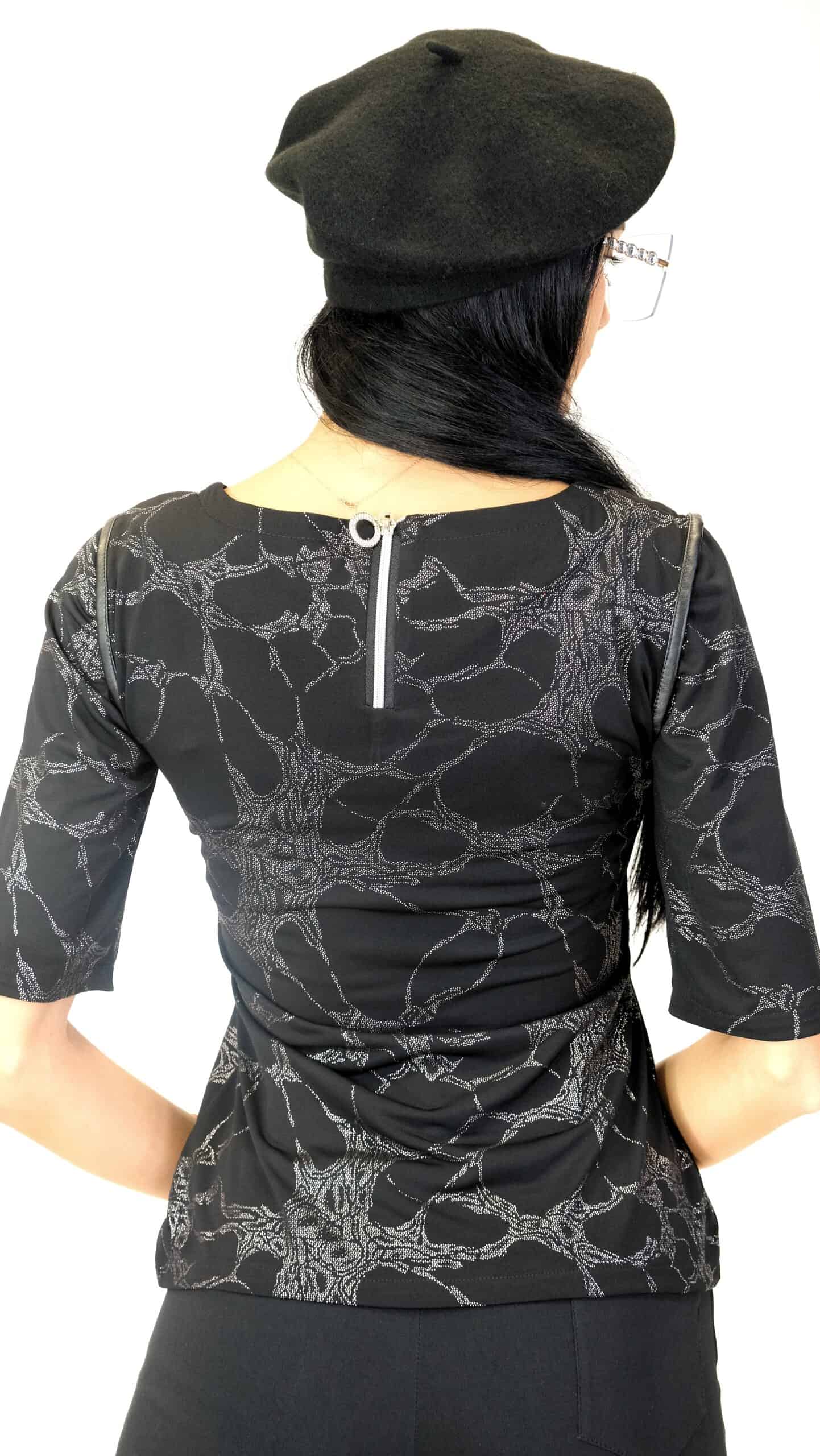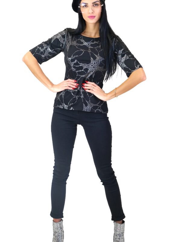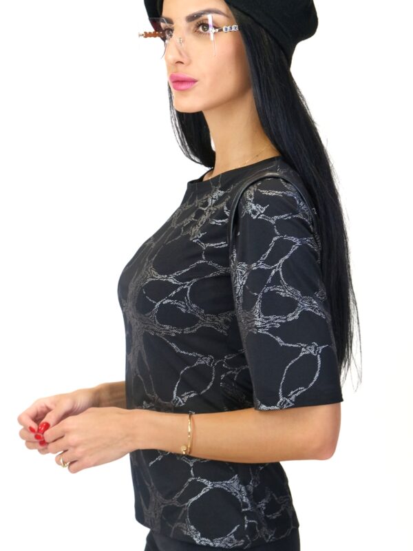 Top je navrhnutý v jednoduchom strihu, ktorý padne na každú postavu. Top je ušitý z ľahkého prispôsobivého úpletu. Top výborne sadne na postavu a dá sa veľmi ľahko skombinovať s čiernymi úzkymi nohavicami. Top má zaujímavú potlač, ktorá mu dodáva šmrnc.