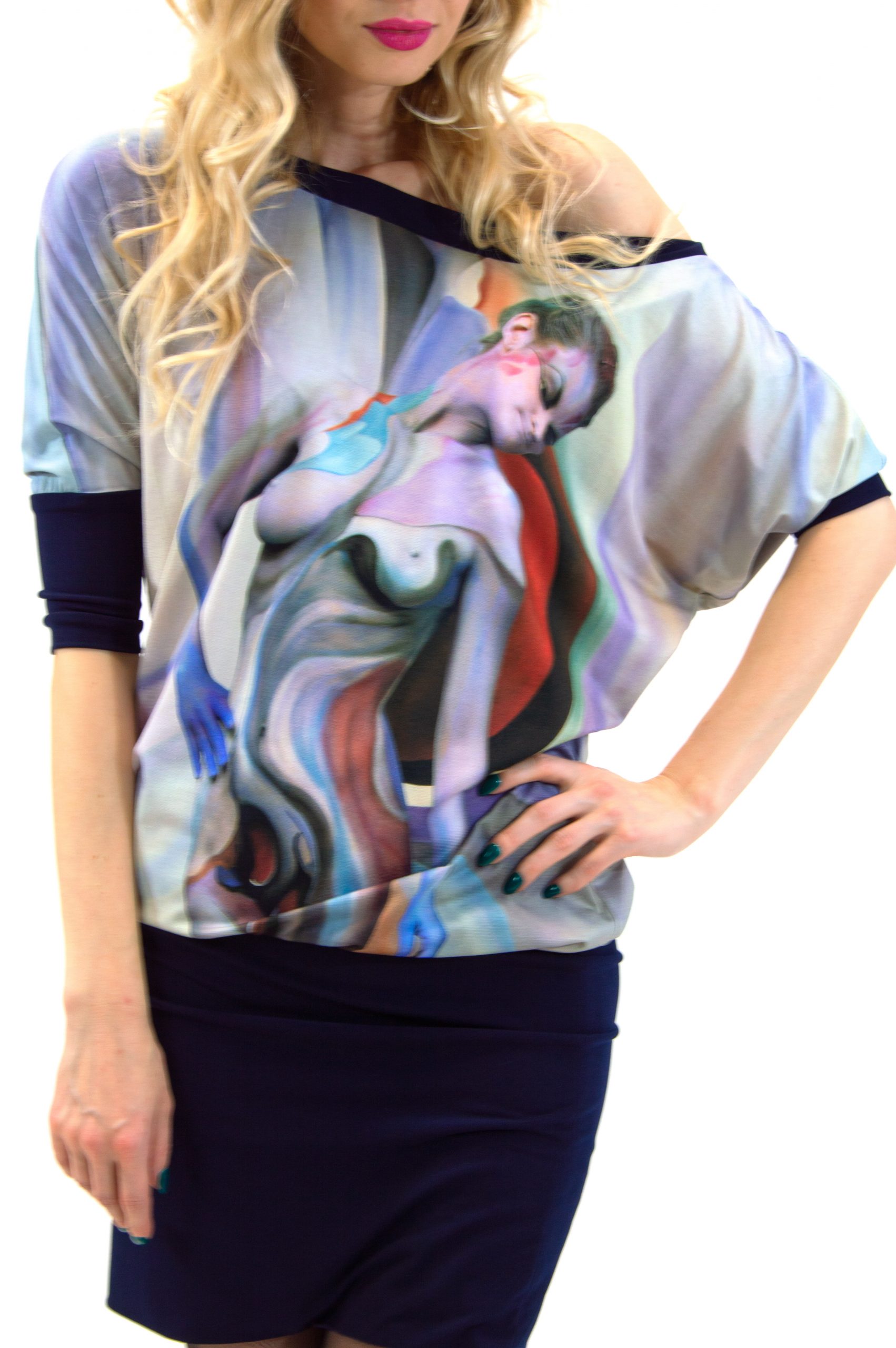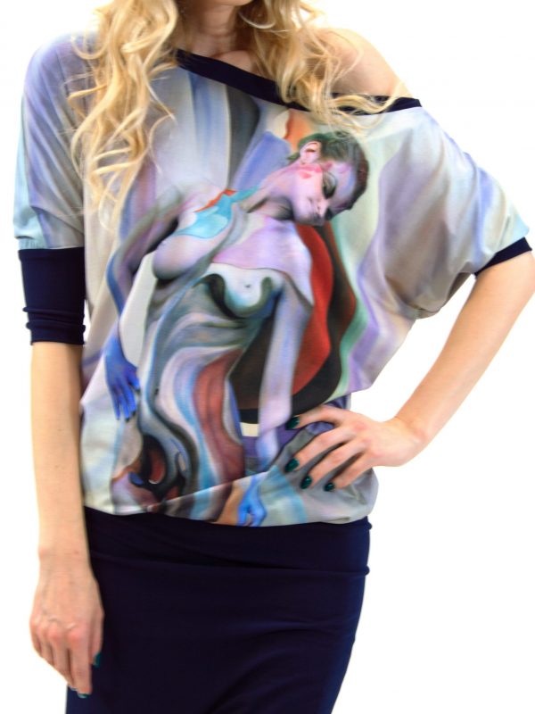 Tunika ušitá v pohodlnom veľkorysom strihu s dominantným patentom v spodnej časti a na rukávoch. Tunika má výnimočný dizajn pripomínajúci olejomaľbu v múzeu a hrá všetkými obľúbenými pastelovými farbami jesene. Výnimočný kúsok, ktorý sa bude vynímať v každom šatníku.